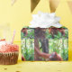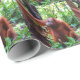 Papel de papel de embrulho dos animais selvagens para amantes dos animais, características um orangotango na floresta húmida de Bornéu. O artista é um voluntário neste lugar com salvamento e reabilitação do órfão do orangotango. Doa todos seus lucros nesta imagem a esta causa da conservação. Os orangotango são grandes macacos delicados, conhecidos para seu cabelo vermelho distintivo. São espécie em vias de extinção.