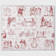 Ilustrações da edição de 1894 do Orgulho e Preconceito de Jane Austen com citações memoráveis em estilo monocromático vermelho e branco para os amantes do livro, Sr. Darcy e Regency era romance.