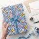 Papel De Presente Ornamentado Azul Fruticultura Floral Berries Azule