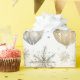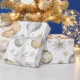 Esta imagem de aquarela vintage apresenta ornamentos maravilhosos em ouro e prata para o seu papel de Natal e de inverno. Nesse rolo as cores predominantes são o ouro e a prata, com também um pouco de coloração preta, além de alguns detalhes caprichosos de flocos de neve e faíscas.
