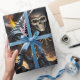 Papel De Presente Ossos e magia, esqueleto com dados místicos.