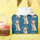 Um ouro bonito com um chapéu de Papai Noel em um fundo azul com texto Feliz Feriado. A cor de fundo pode ser alterada.