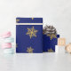 Papel De Presente Ouro do teste padrão dos flocos de neve no azul