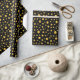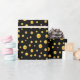 Um belo e elegante olhar metálico dourado confete sobre papel de enrolamento preto em fundo. Um belo e moderno papel de moldagem.