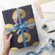 Papel De Presente Ouro Oceano Marinho Conchas Azuis Marinho Vip Yach