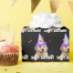 Recuperador de ouro bonito com chapéu de festa de aniversário, texto branco e confete dourado sobre fundo preto. A cor de fundo pode ser editada.
