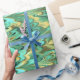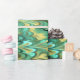 Papel De Presente Ouro, verde & teste padrão marmoreado turquesa