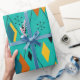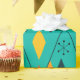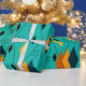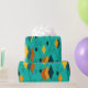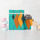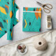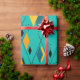Este papel de embrulho tem um design atômico moderno século médio de diamantes, e estereótipos em um campo de turquesa.