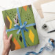 Este papel de embrulho tem um design de diamantes moderno século médio 1970, e estrelos em um campo de verde.