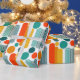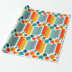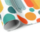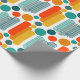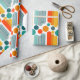 Este papel de embrulho tem uma design moderna do século médio de ovais e círculos em laranja, ouro, lacre e turquesa num campo de branco. Quer o mesmo design com cores diferentes? Me mande mensagem.