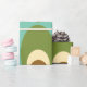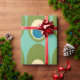 Este papel de embrulho tem uma design moderna do século médio de ovais verdes com ovais e círculos neles fazeres que eles se parecem com ovos em cores retrorativas de vermelho, amarelo, azul, verde, marrom e laranja em um campo de azul claro.