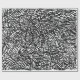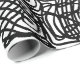 Design preto e branco de linhas voadas aleatórias.