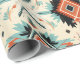 Penas e motins tribais de papel embrulhado no sudoeste em azuis e terracota.