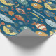 Papel de embrulho azul-padrão para peixes do oceano Whimsical