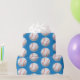 Papel de embrulho de criança bonito para embrulho de presente de aniversário com ilustração de um baseball feito em um padrão. O fundo é azul.