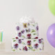 O bonito padrão floral apresenta as folhas e as pincas de cor amarela e púrpura em fundo branco.