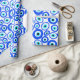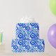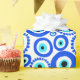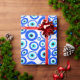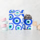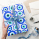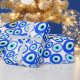 Papel de embrulho azul e branco, colorido, com padrão, que apresenta o simbólico olho grego. Proclamada proteção contra mau. Vistas em muitos países, incluindo a Grécia e a Turquia.