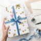 Papel De Presente Padrão branco estrelado de ouro festivo moderno Xm