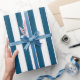 Papel De Presente Padrão Branco Moderno sobre Stripes Azuis