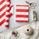 Padrão cardíaco de alegria festiva sobre fundo vermelho e branco listrado Papel de embrulho para presente.