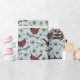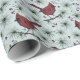 Este elegante papel de embrulho de inverno apresenta um padrão de aves cardeal vermelhas desenhadas à mão tocadas em galhos de pínus contra fundo azul macio.