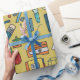 Um padrão perfeito com material escolar em um fundo amarelo. ilustração