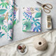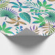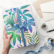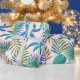 Lave o padrão sem descontinuidades das folhas tropicais em tons azuis e verdes sobre um fundo branco.