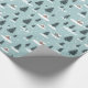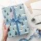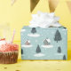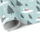 Um encantador padrão de inverno com cascas confortáveis, árvores cobertas de neve e flocos de neve frágeis em um fundo azul macio. Perfeito para designs sazonais e decoração de férias.