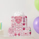 Este padrão charmoso mostra símbolos de romance e doçura, incluindo corações, cerejas, morangos, arcos, macarões e bolas de disco. Com uma paleta cor-de-rosa macia e ícones lúdicos como letras de amor e batom, cria uma vibração animada e afetuosa, perfeita para celebrar amor e beleza.