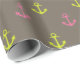 Papel De Presente Padrão de Âncoras Náuticas Verdes, Castanho, Rosa