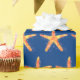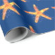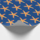 Padrão de pinturas de estrelas-do-mar em fundo amarelo texturizado. Rolos de papel de embrulho personalizados. Ideia de presente para adultos e crianças.