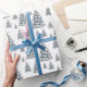 Celebre as festas de fim de ano com um toque suave da costa usando este papel de embrulho com uma árvore de Natal em aquarela em verde-sage. A árvore é decorada com conchas azuis e brancas e é encimada por uma estrela-do-mar branca, criando uma paleta de cores azul e branca. O fundo é atualmente branco, mas você pode alterá-lo para qualquer cor para combinar com o seu estilo de Natal. Este padrão praiano e caprichoso é perfeito para adicionar um toque relaxado e festivo ao embrulho dos seus presentes de Natal.
