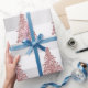 Papel De Presente Padrão de Árvore de Natal Dourada da Elegante Rosa