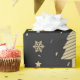 Papel De Presente Padrão de Árvore de Natal Elegante Preto e Dourado