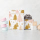 Papel De Presente Padrão de Árvore de Natal rosa e Dourado moderno