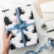 As árvores de Natal pretas têm papel de embalagem de qualidade. White paper em roll - você escolhe o comprimento! Um padrão de pinheiros negros com ramificações é o design. As cores neutras vão com tudo e funcionam para uma decoração minimalista.