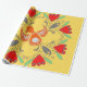 Papel De Presente Padrão de aves florais bonitinhas amarelas moderna