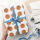 Este papel de embrulho de temas de basquetebol apresenta um padrão repetitivo de bolas de cesto laranja e pretas. Clique em "Personalizar" para selecionar uma cor de fundo que você quiser.