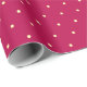 Papel de enrolamento que apresenta um padrão simples de bolinhas sobre um fundo cor-de-rosa escuro.