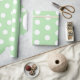 Papel de embrulho com padrão de bolinhas verde sálvia e branco .