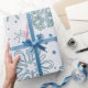 Papel de empacotamento do padrão brilhante azul Snowflake