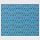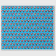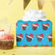 Padrão moderno com diferentes touros franceses vestindo chapéus e óculos de sol vermelhos em fundo azul.
