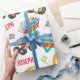 Adicione um pouco de diversão ao presente do seu garotinho com este papel de embrulho que tem caminhões de monstros coloridos. Há um caminhão monstro verde dirigindo através de um anel de fogo, um caminhão monstro vermelho assistindo, e um caminhão monstro azul pulando sobre uma pilha de sujeira. Há também bandeiras de corridas controladas e o nome do seu filho. Este presente é uma divertida adição personalizada a um presente para qualquer criança que ama caminhões monstros e é perfeito para aniversários, Natal e outros feriados!