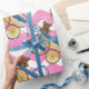 Chic Pink Chevron Baby Pattern Wrapping Paper do ITD Colors Galore apresenta nossa cor rosa doce única com nossa textura característica em um padrão de zag no fundo com nossa ilustração original de um doce e colorido bebê picante segurando um fofinho de pelúcia em um padrão diagonal no topo.