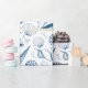 Papel de embrulho azul e branco com padrão de conchas marinhas. Itens correspondentes disponíveis. Arte original feita a partir das ilustrações dos próprios artistas. Por favor, use o botão de mensagem abaixo para obter ajuda com personalizações adicionais e pedidos especiais. © Zoe Chapman Design
