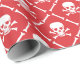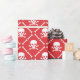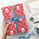 Papel De Presente Padrão de Crânio Branco e Vermelho Natal