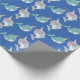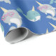 Este papel de embrulho bonito apresenta um padrão cômico em azul do unicórnio do mar - o narval!