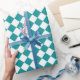 Papel De Presente Padrão de Diamante do Verificador Branco Teal