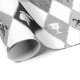 Esta moda design apresenta elementos equinos e padrão diamante em tons brancos de cinza monocromáticos: equipamento de equitação, cavalos, objetos de corrida. Apelará a todos os equestres e amantes deste nobre animal. O cavalo é um animal majestoso que encarna o poder espiritual da independência, liberdade, força, coragem, nobreza, resistência, confiança, triunfo, heroísmo e competição.