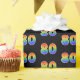 Este design de papel de embrulho giro, colorido e vibrante apresenta o número "80" com um padrão multicolorido de gradiente de espectro, em um fundo preto colorido. Um papel de embrulho como este poderia talvez ser usado no embrulho de presentes ou de presentes para o oitavo aniversário de alguém, ou talvez para o oitavo aniversário de casamento de um casal, ou outro evento de 80. [~Z0000338]